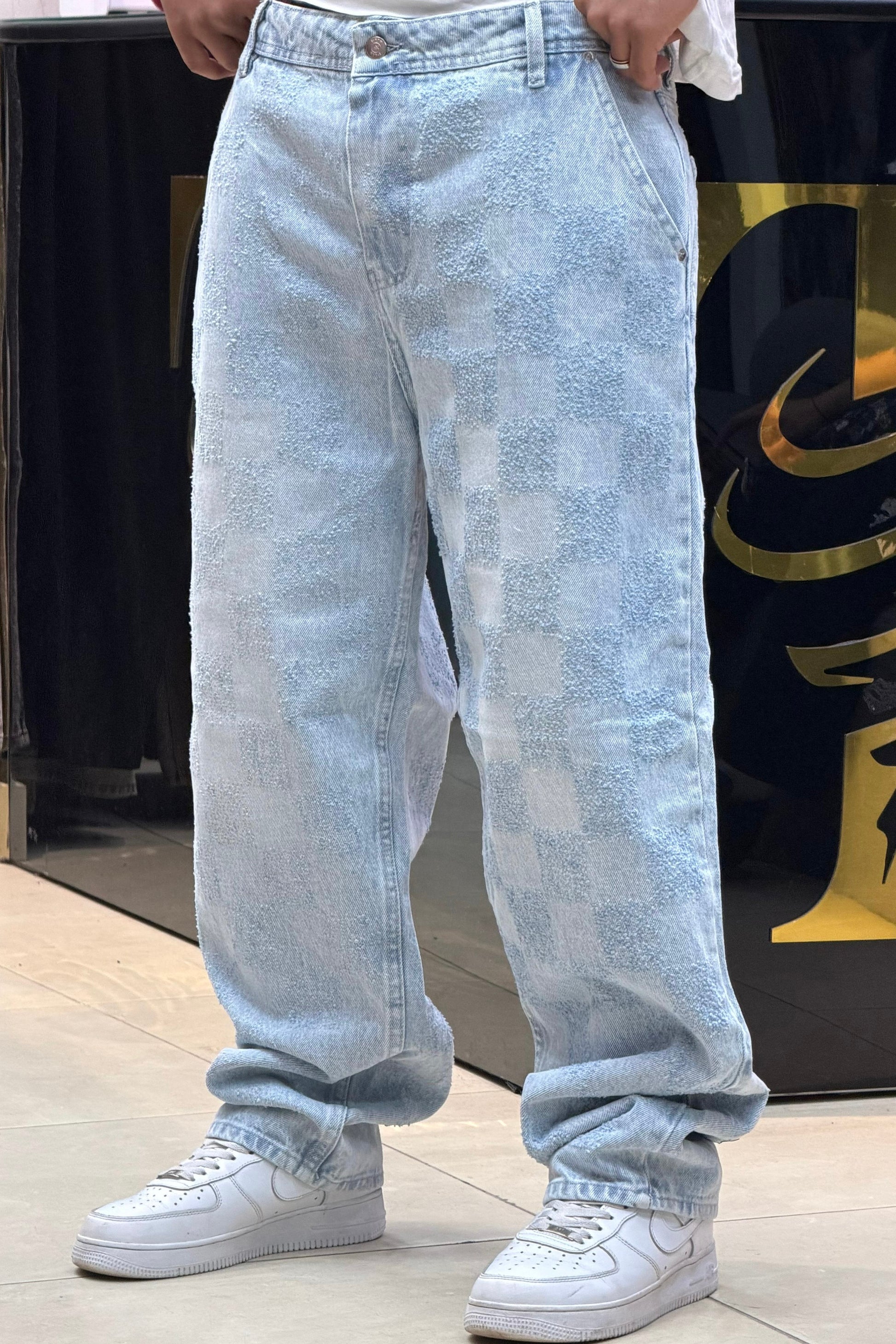 BAGGY JEANS CARREAU LASER BLEU DELAVE