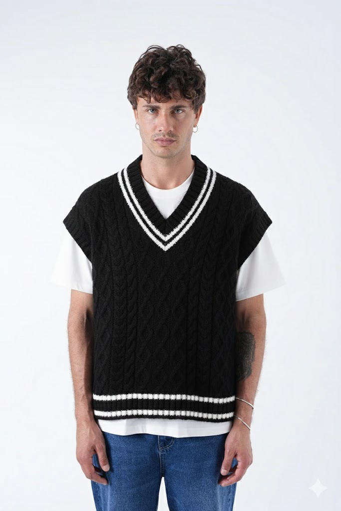 Striped V-Neck Sweater BLACK 3012