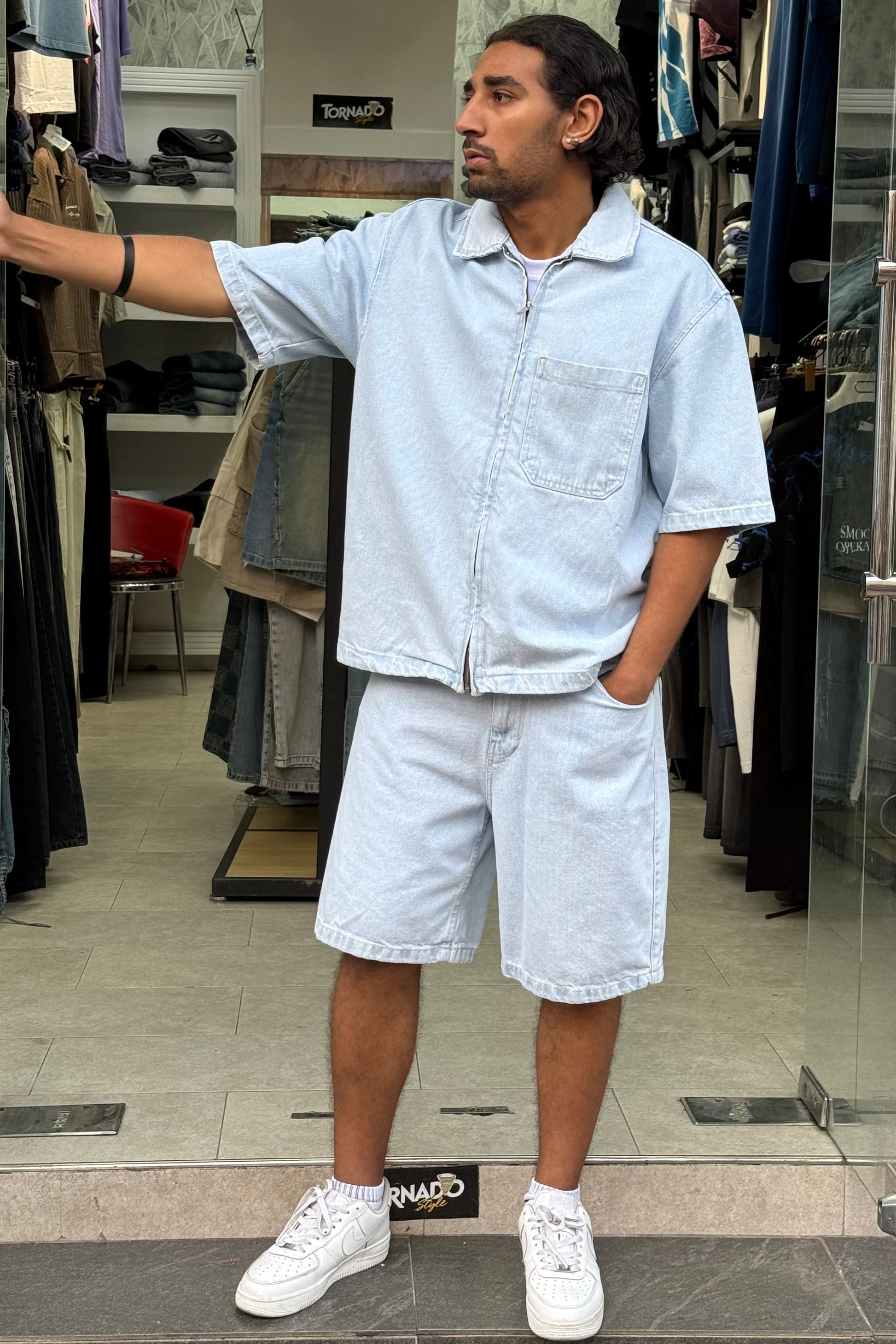 ENSEMBLE JEANS AVEC SHORT DELAVE