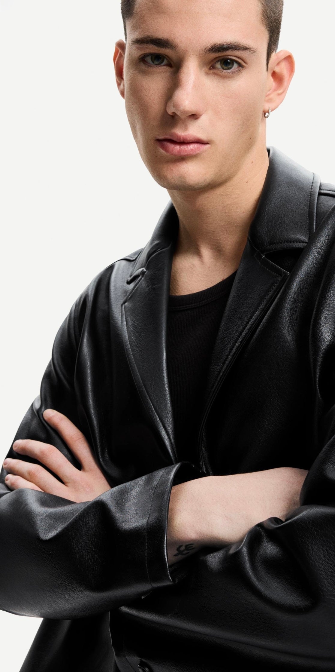 FAUX LEATHER CROPPED BLAZER BERSHKA
