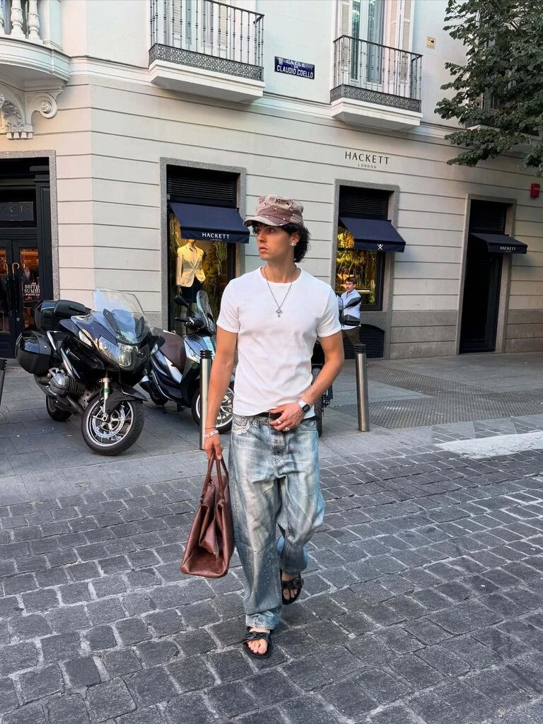 BAGGY JEANS IMPRIME BLEU BERSHKA